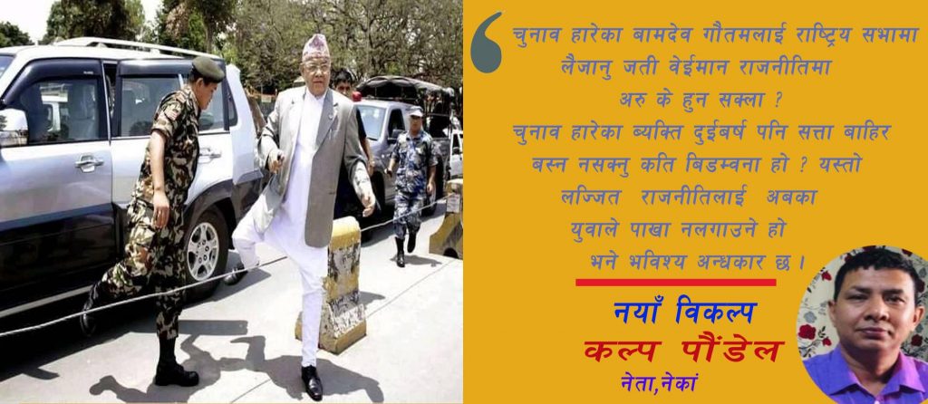 नेपालको संविधानअनुसार राष्ट्रिय सभालाई स्थायी सांसदको रुपमा ब्याख्या गरेको छ । राष्ट्रिय सभामा प्रतिनिधि गर्ने व्यक्ति विशेष योगदान र अनुभव भएको हुनुपर्ने मान्यता छ । तर नेकपा सरकारले यो उपल्लो संसदलाई बामदेवजस्ता बदनाम र जनताबाट तिरस्कृत व्यक्तिलाई थन्क्याउने र जनमतलाई लत्याउने काम गरेको छ ।
