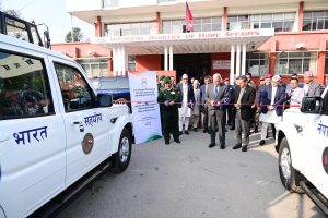 गृह मन्त्रालयमा आज आयोजित कार्यक्रममा गृहमन्त्री ओमप्रकाश अर्याललाई नेपालका लागि भारतका राजदूत नवीन श्रीवास्तवले प्रतिकात्मकरुपमा ती सवारी साधन हस्तान्तण गरे ।