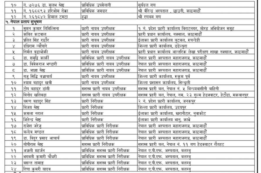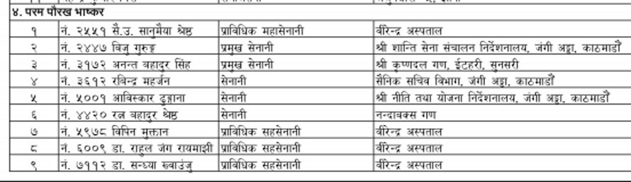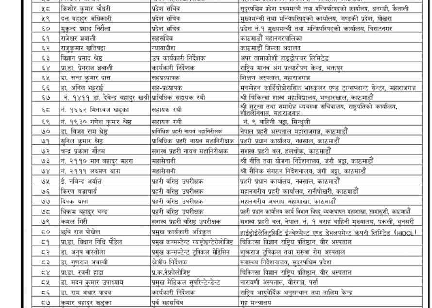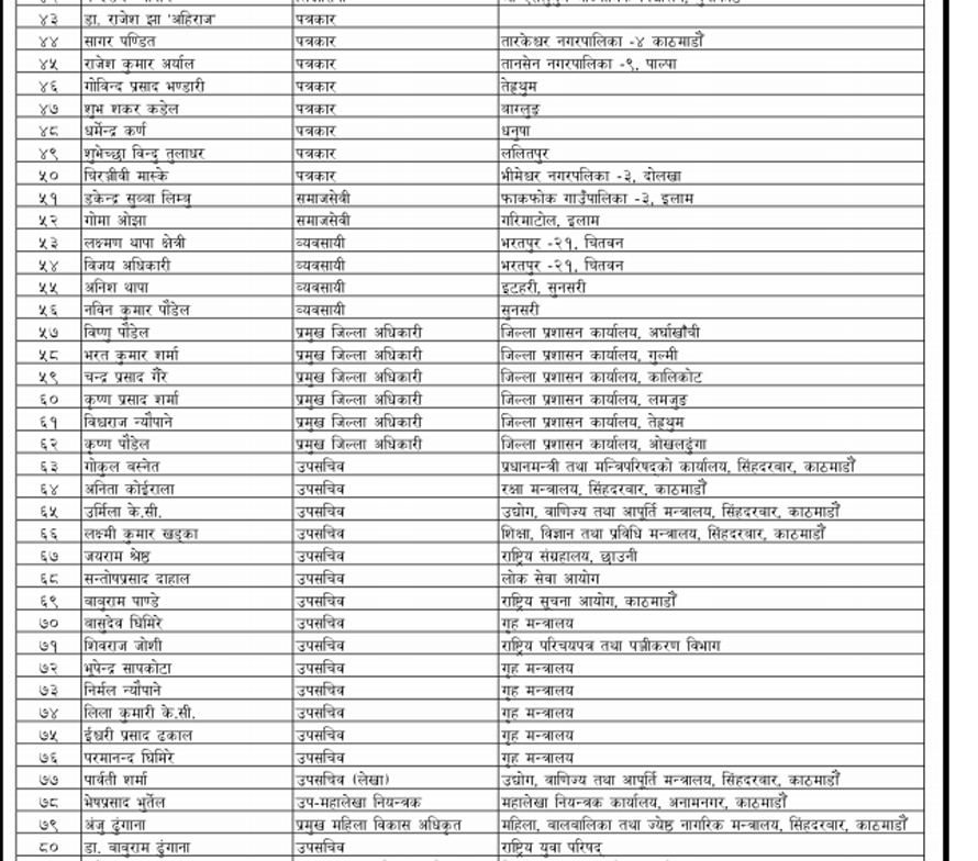 कोभिड–१९ महामारीका क्षेत्रमा महत्वपूर्ण योगदान पुर्याउने महानुभावलाई समेत समेट्नुपर्ने भएकाले ५९४ जनाको नामावली विभूषण, अलंकार र पदक पाउनेहरुको सूचीमा छ ।