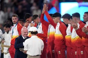 आयोजक राष्ट्र फ्रान्सलाई हराउँदै स्पेनले जारी पेरिस ओलम्पिकमा फुटबलतर्फको स्वर्ण पदक जितेको हो। फ्रान्सलाई अतिरिक्त समयमा ५–३ गोलले हराउँदै स्पेन सन् १९९२ पछि पहिलोपटक फुटबलको स्वर्ण पदक जित्न सफल भएको हो।